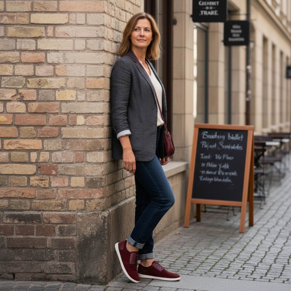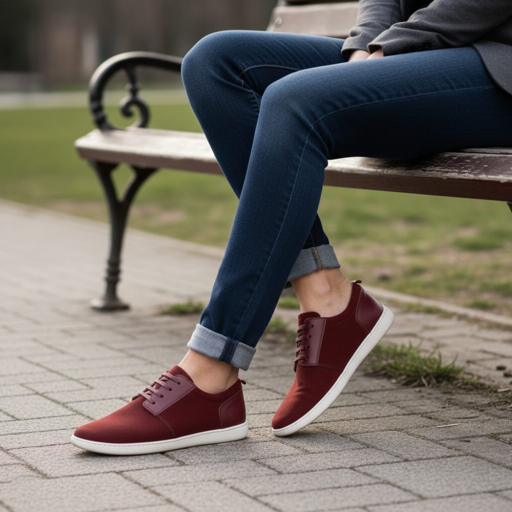 Êtes-vous à la recherche d'une sneaker pieds nus élégante et moderne? Notre PIQUANT Bordeaux sera avec sa combinaison de couleurs en rouge foncé et en blanc.