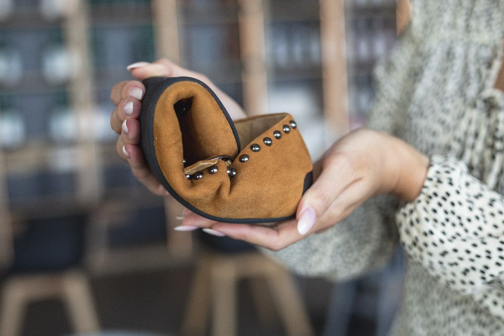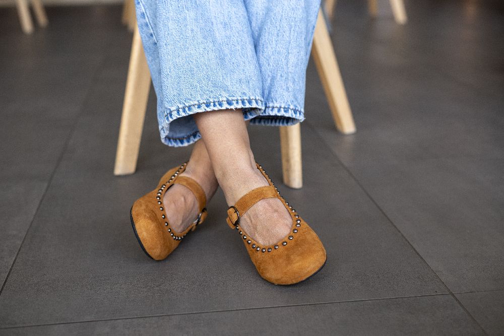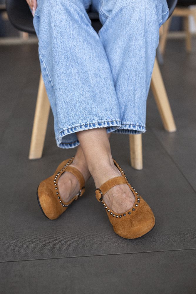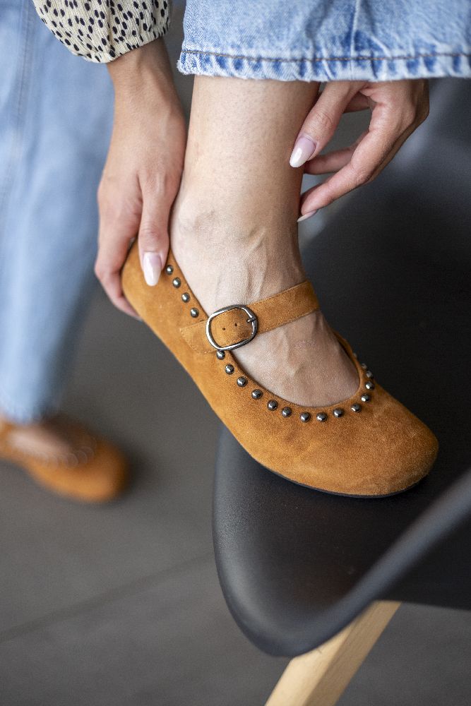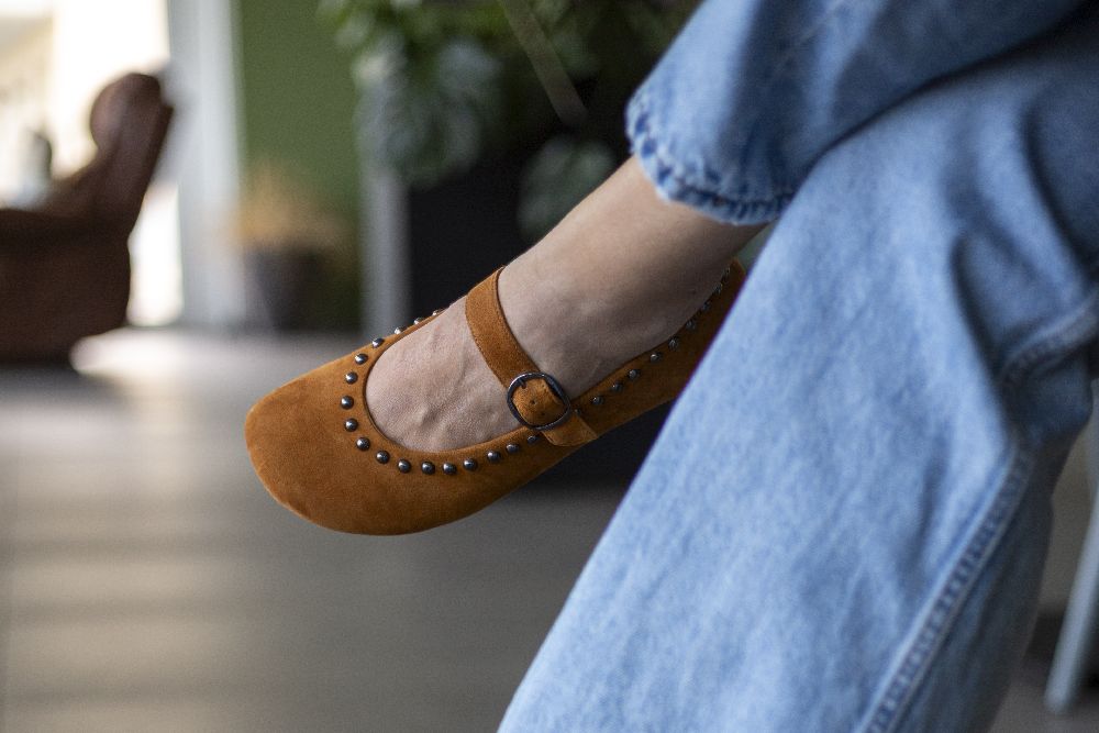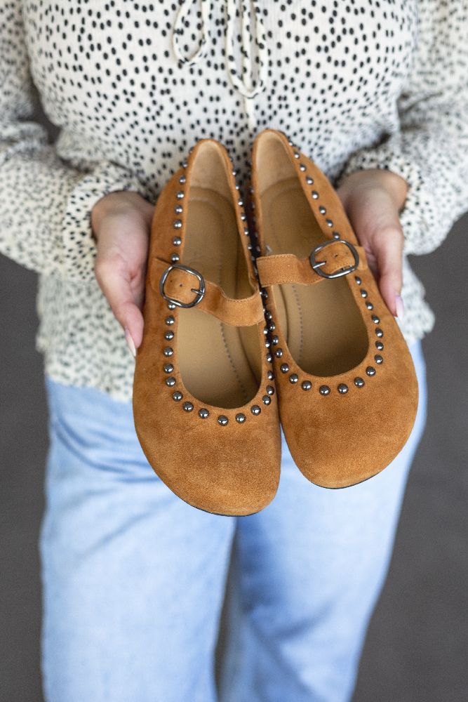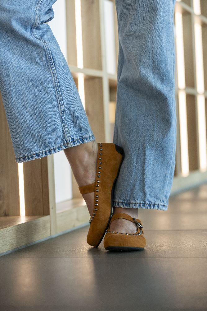 Notre Dieqo Brown est notre toute nouvelle chaussure de ballerin en daim marron. Ce bijou est bordé de rivets ronds et donne à chaque tenue une touche de glamour, sans prévenir le confort incroyable auquel vous êtes habitué à partir de nos chaussures aux pieds nus.