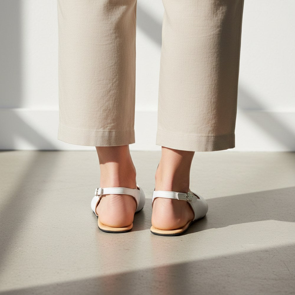 Pinq White est un mélange élégant de ballerine et de sandales.
