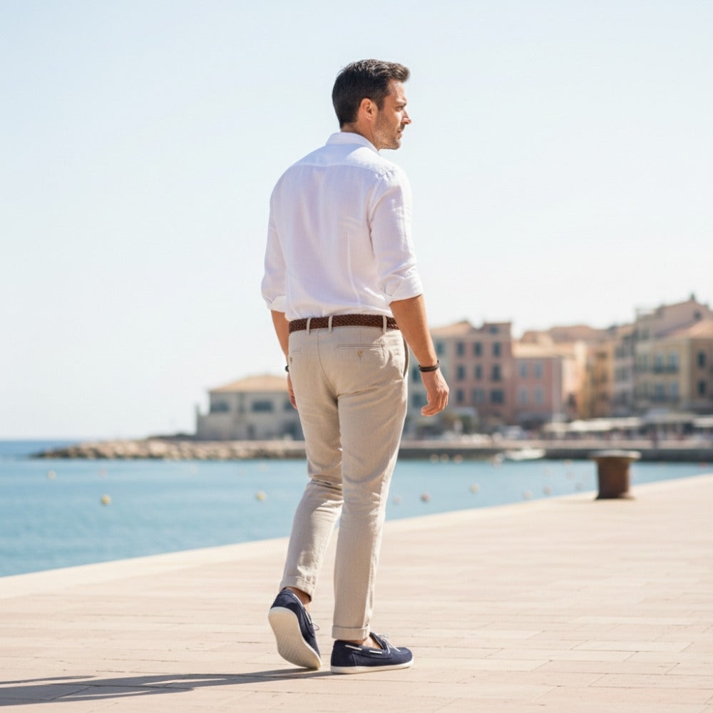 Ces chaussures de bateau élégantes sont le choix parfait si vous voulez vous habiller avec désinvolture et en même temps. Les Velours QEA Bleu correspondent idéalement le léger pantalon d'été ou un chino chic. Combinez-les avec une chemise lâche ou un polo, et vous êtes prêt pour une journée de détente sur la plage ou un dîner d'été.