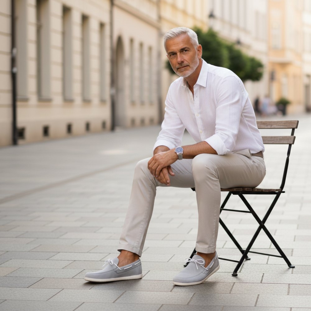 Les chaussures de bateau Lightgrey du QEA Velor sont le choix idéal pour l'homme conscient du style qui ne veut pas faire de compromis sur le confort et le design.