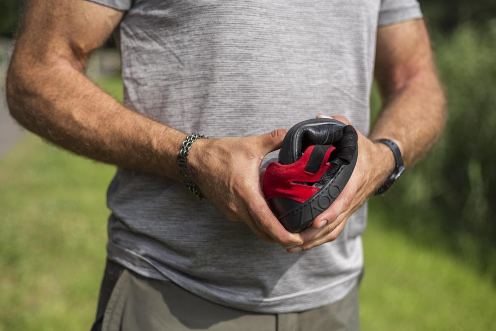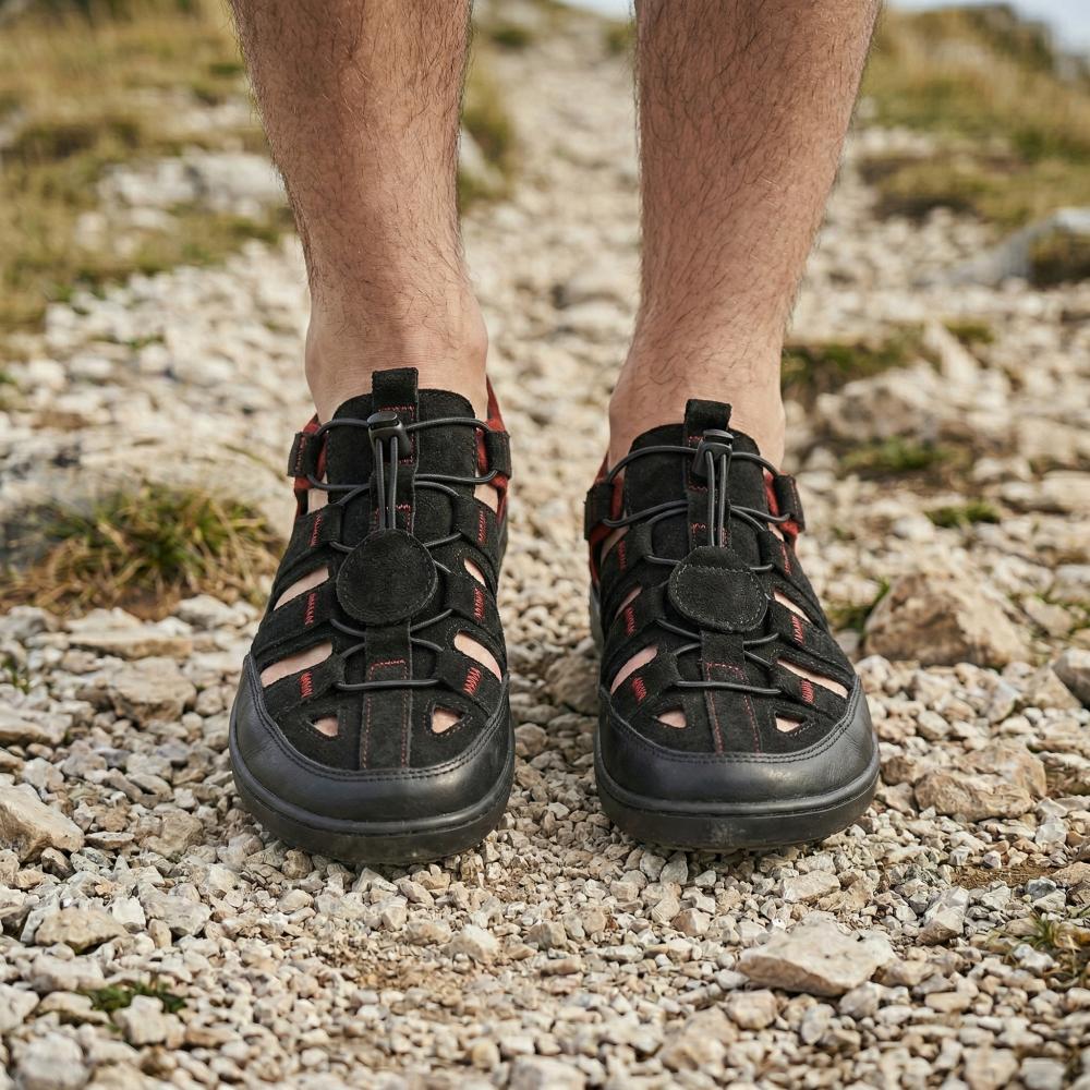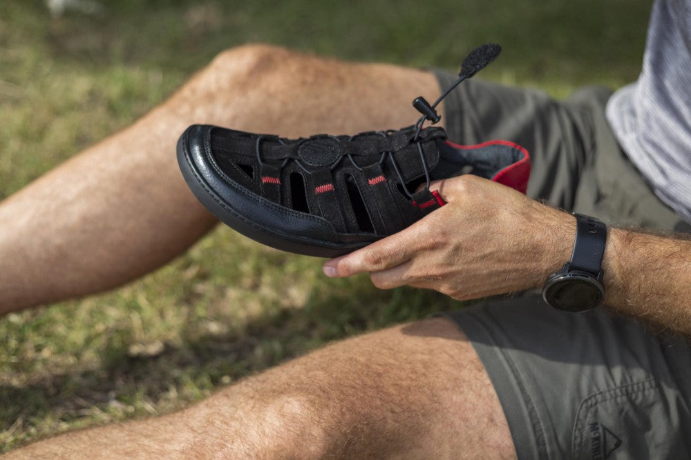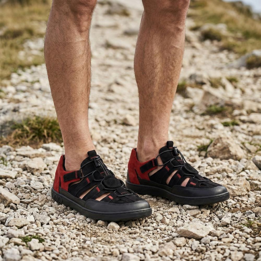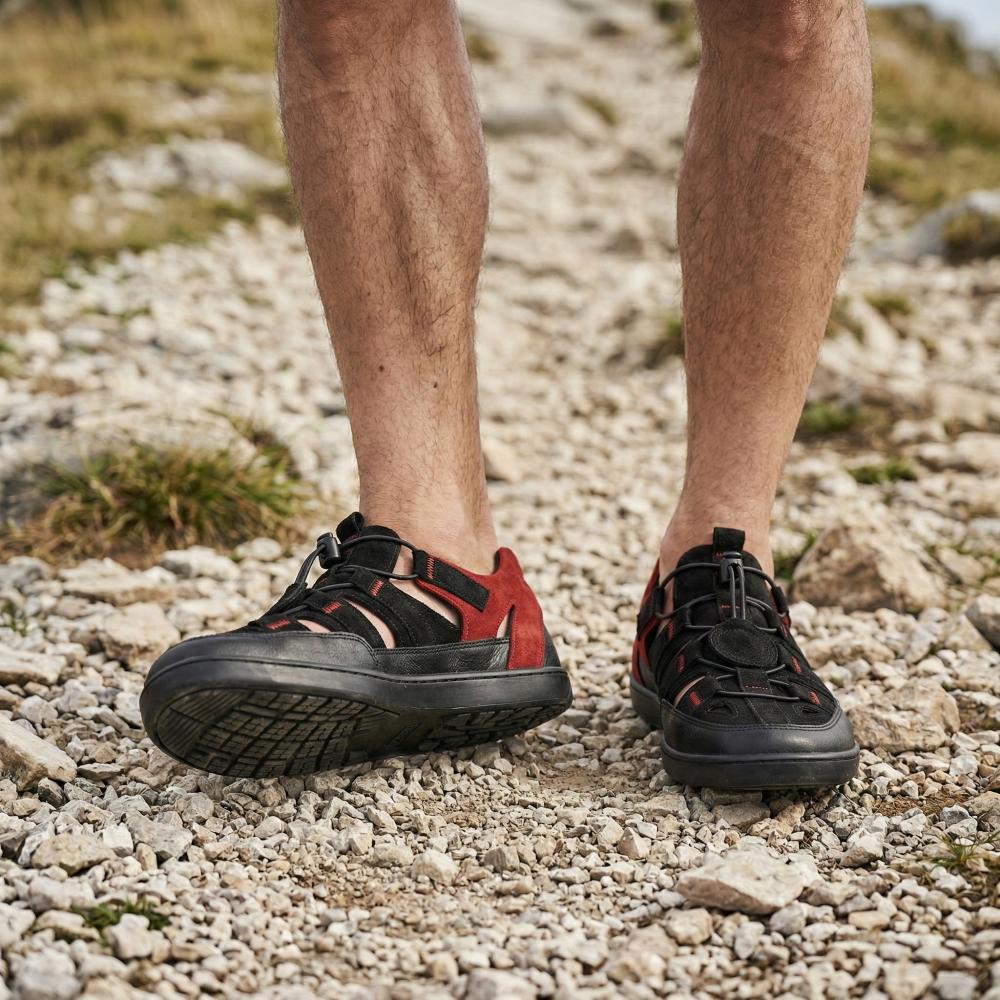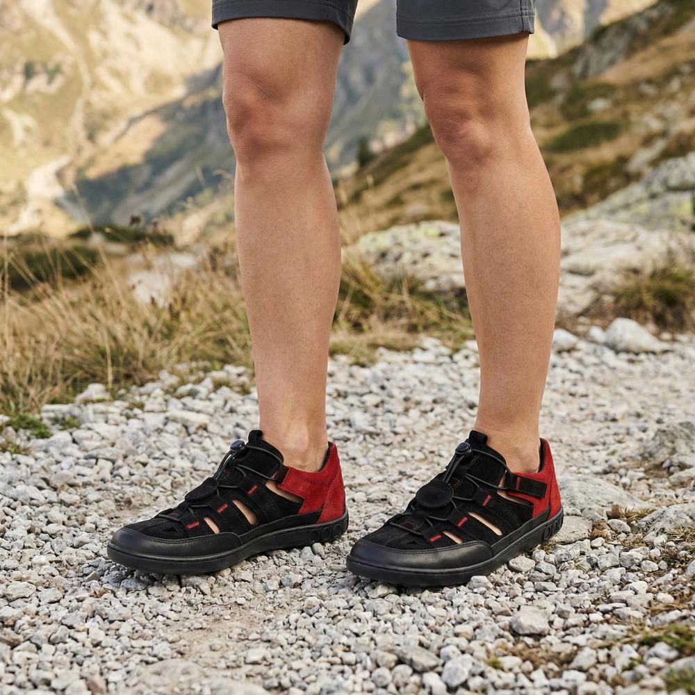 Le rouge et le noir sont toujours une bonne combinaison et la connexion en sandale ouverte et une chaussure extérieure fermée fait de notre Qerry le compagnon idéal en été.