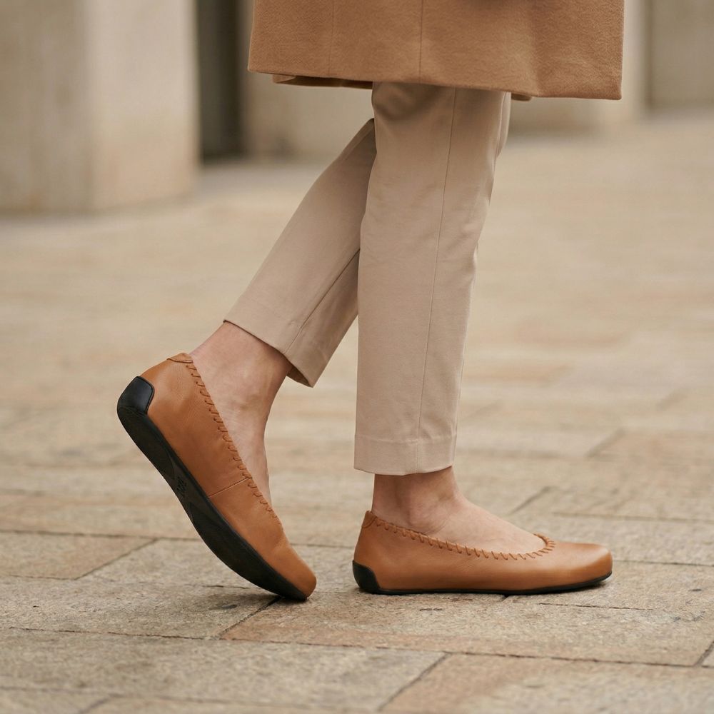 Qreta Brown combine le meilleur des deux mondes: l'apparence élégante des ballerines classiques et les avantages incomparables des chaussures aux pieds nus.