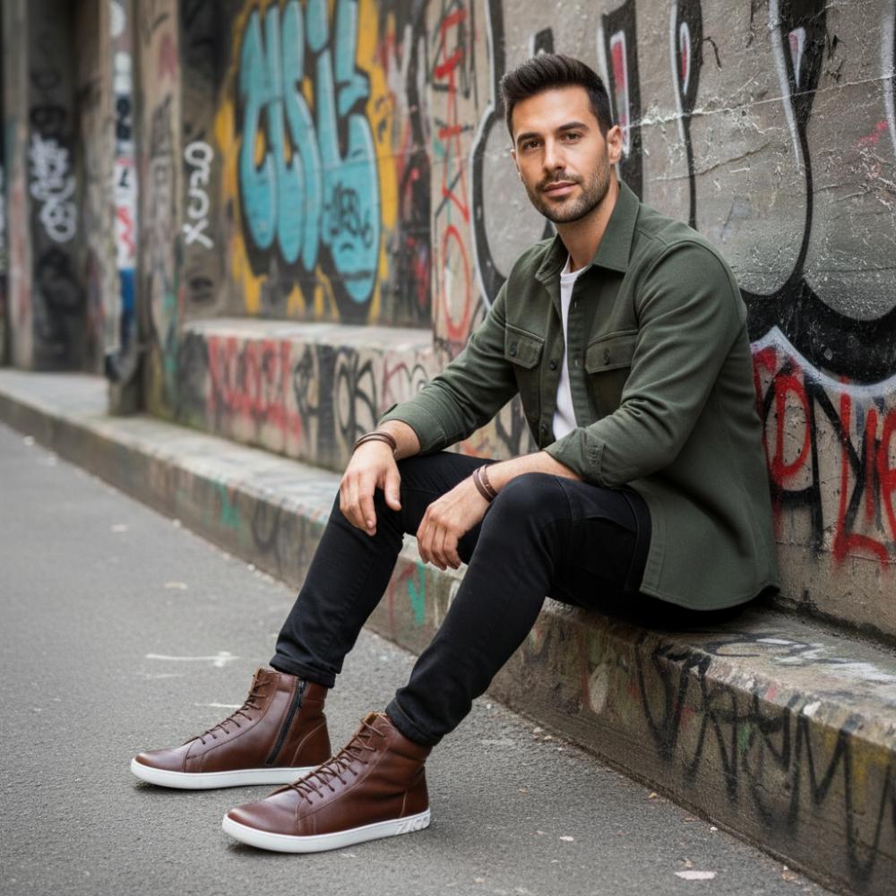 Souhaitez-vous une chaussure pieds nus qui combine deux tendances? Ensuite, nous vous présentons notre brun antique SNAQ. Les baskets élevés et les modèles de look rétro sont actuellement très populaires.